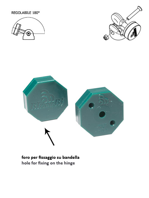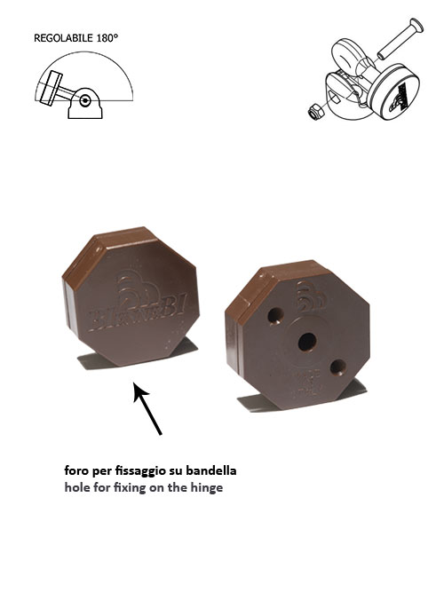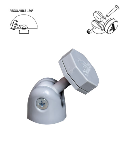 KIT FERMANTE MAGNETICO SNODATO OTTAGONALE in ABS serie semplice modello tondo con magnete al neodimio MPN 45 con foro per fissaggio su bandella. I modelli sono depositati.